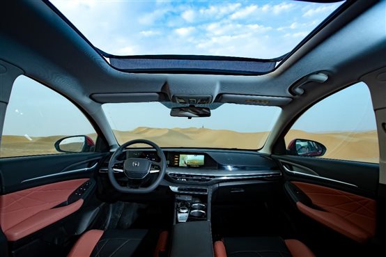 駛出冷藏車庫后,通過嘉賓現(xiàn)場(chǎng)觀測(cè)和操作,發(fā)現(xiàn)近80℃瞬時(shí)極限溫差下的熱脹冷縮并未影響到2022款逸動(dòng)PLUS的車身剛性結(jié)構(gòu)穩(wěn)定性。且得益于出色的車身密封表現(xiàn),2022款逸動(dòng)PLUS儀表盤、車燈均未出現(xiàn)水汽,智能AI小安、540°高清全景影像等功能亦可順暢使用。在順利通過“瞬時(shí)極限開箱”環(huán)節(jié)考驗(yàn)后,2022款逸動(dòng)PLUS沿著沙漠公路,踏上了探秘中國(guó)科學(xué)院新疆生態(tài)與地理研究所塔克拉瑪干沙漠研究站的征程。