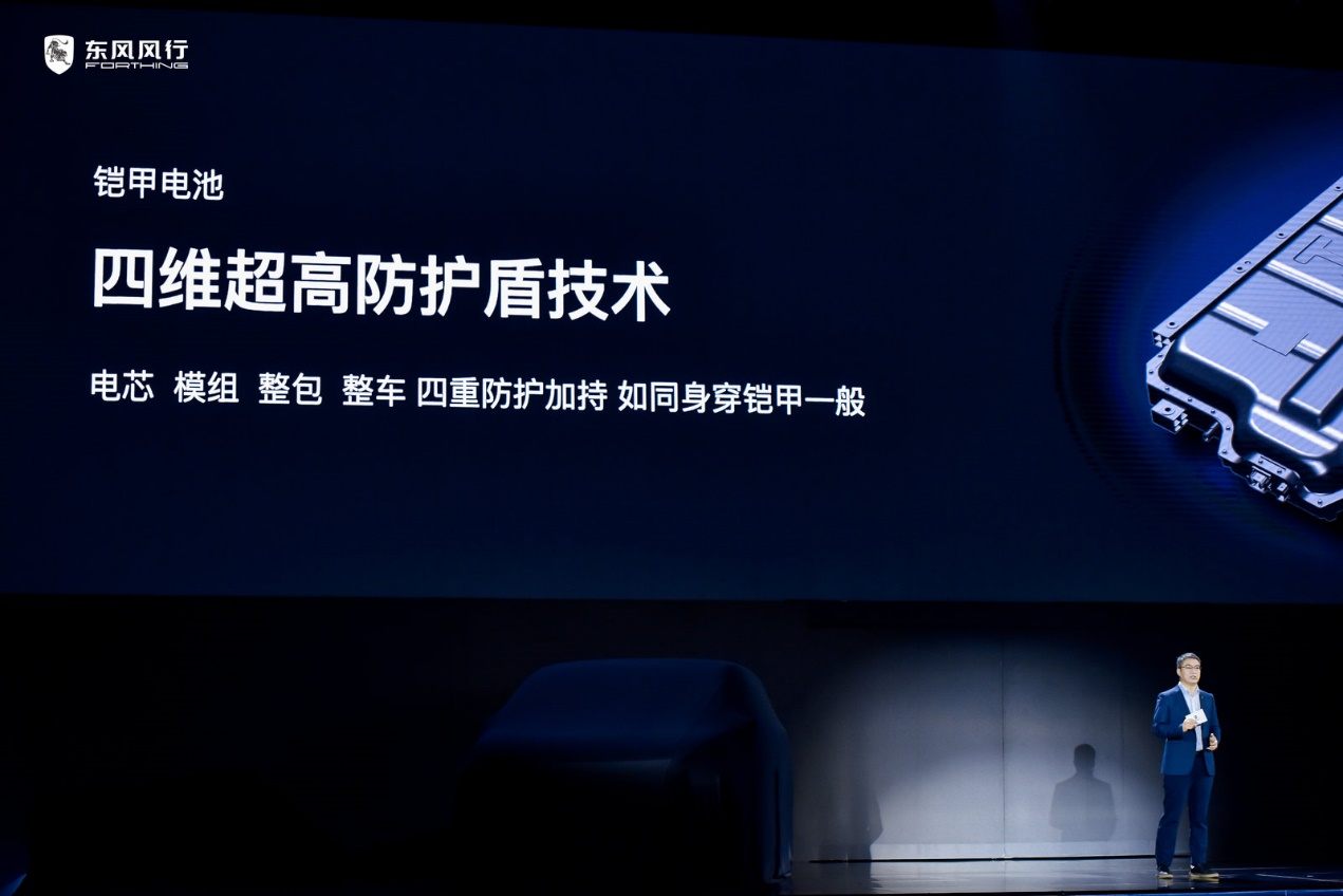 軍工背景加持,東風風行更深知在新能源領域,電池安全至關重要。因此,東風風行推出了超安全鎧甲電池,從技術而言,其擁有四維超高防護盾技術,從電芯、模組、整包到整車,如同身穿鎧甲一般,四重防護加持,安全和性能都頗高。