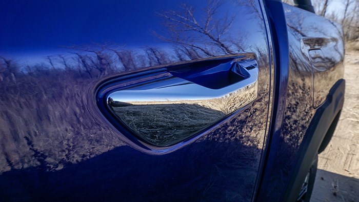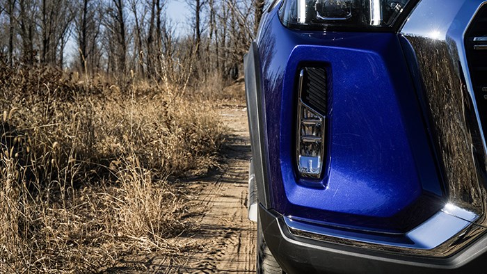 采用大尺寸六邊形的進(jìn)氣格柵,內(nèi)置點陣式裝飾,外圈還配有粗壯的鍍鉻飾條,很有美式皮卡的影子。