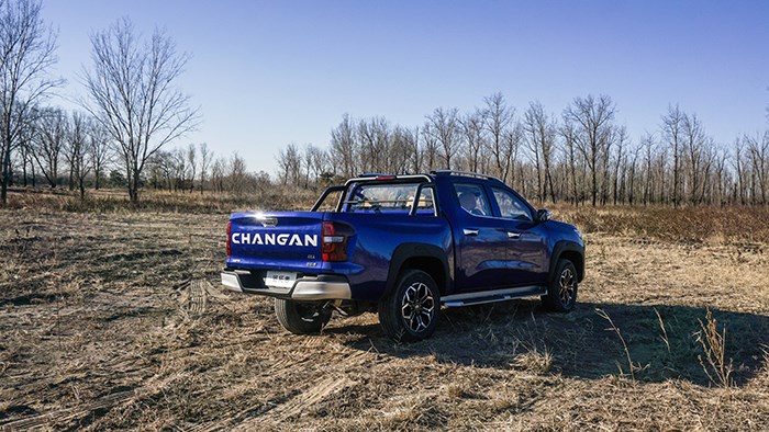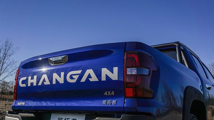 尾部的造型相對簡潔,尾門上帶有“CHANGAN”英文字帖,底部配有腳踏板方便查看及搬運尾箱物資,貨廂內(nèi)空間較為規(guī)整并帶有貨廂寶。
