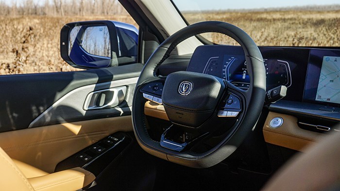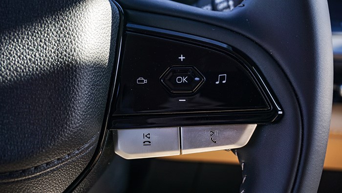 覽拓者方向盤的造型和手感也非常出眾,兩側(cè)配有多功能按鍵并帶有鍍鉻飾板裝飾,使用起來非常便捷。