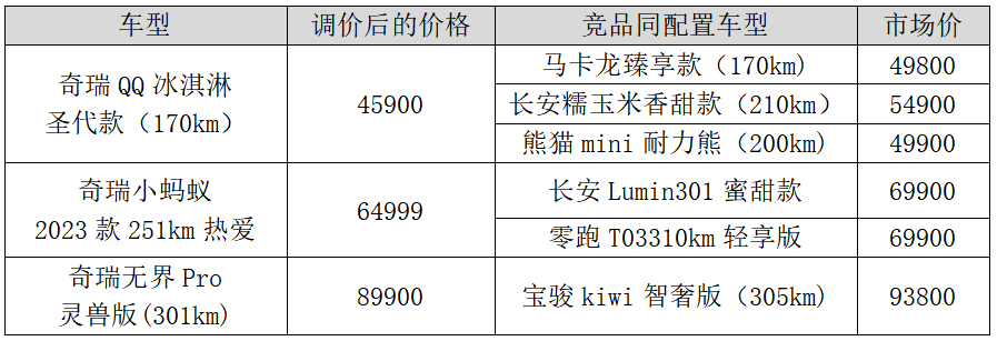 2023年3月27日0點(diǎn)起,奇瑞新能源旗下奇瑞QQ冰淇淋、奇瑞小螞蟻和奇瑞無(wú)界Pro三款產(chǎn)品官方指導(dǎo)價(jià)正式回調(diào),至高回調(diào)幅度9000元。當(dāng)汽車(chē)行業(yè)最殘酷的價(jià)格戰(zhàn)打響,限時(shí)降價(jià)、保價(jià)等奇招盡出時(shí),奇瑞新能源將格局直接拉滿(mǎn),成為純電小車(chē)首家官降。