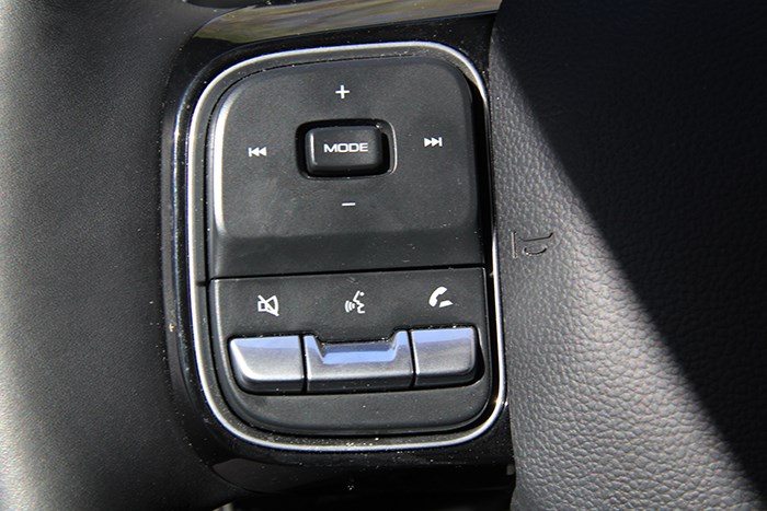 三幅式方向盤握感較為飽滿,造型時(shí)尚立體,看起來(lái)很有力量感。方向盤操作時(shí)轉(zhuǎn)向有一定虛位,指向并不十分精準(zhǔn),但轉(zhuǎn)向阻尼調(diào)教的不錯(cuò),保持了一種相對(duì)柔順的感覺(jué)。方向盤的多功能按鍵包含了儀表信息控制、中控信息控制、語(yǔ)音交互、藍(lán)牙電話等功能,按鍵大小適中,靈敏度與手感反饋表現(xiàn)出色。
