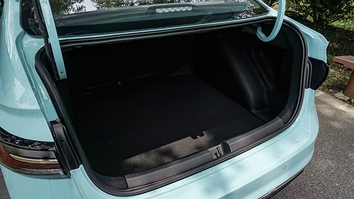 按開油箱蓋,可以看到朗逸新銳是可以加入92號(hào)以上汽油的。朗逸新銳的后備箱空間很規(guī)整。