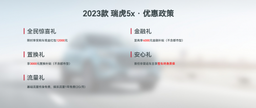 錯(cuò)過后悔一整年!2023款瑞虎5x限時(shí)綜合優(yōu)惠15000元,貸款再享4000遠(yuǎn)金融貼息