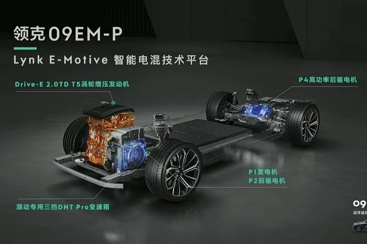 雖然目前官方暫未披露具體信息,但個人猜測很可能是類似領(lǐng)克09 EM-P的電混技術(shù),包括重新調(diào)校的2.0T混動專用發(fā)動機,以及前橋P1 P2雙電機(也有可能是類似領(lǐng)克08的P1 P3雙電機),外加獨立后橋P4電機驅(qū)動。