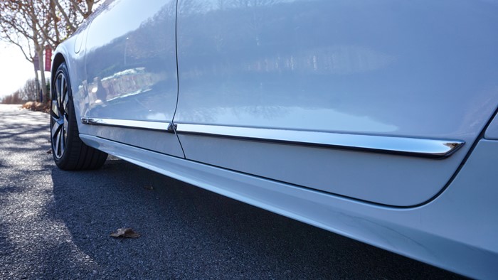 沃爾沃S90的安全確實非同凡響。首先說車身安全方面。它采用比競爭對手更大的硼鋼材料,面積達(dá)到37.6%,這是以硼為主要合金化元素的鋼 ,其硬度可達(dá)到1,300~1,500Mpa,是一般車身鋼材硬度的4~5倍。在同等強(qiáng)度下,質(zhì)量要輕15%。左前翼子板上的充電口證明這是臺插混車型。