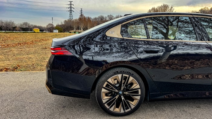 車輛采用20寸雙色動(dòng)感輪轂,前后鴛鴦?shì)喬?,?guī)格為前245/40 R20,后275/35 R20。總體來(lái)說(shuō),寶馬5系轎車的外觀設(shè)計(jì)融合了未來(lái)主義的元素和寶馬品牌的傳統(tǒng)特色,展現(xiàn)出獨(dú)特的時(shí)尚感和科技感。