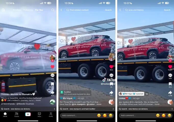 隨著禮物車(chē)的出現(xiàn),TikTok上迅速涌現(xiàn)出大量路拍視頻。從路人驚喜的表情到禮物車(chē)的精美細(xì)節(jié),這些視頻迅速傳播開(kāi)來(lái),吸引了大量網(wǎng)友的關(guān)注和點(diǎn)贊。部分網(wǎng)友在評(píng)論區(qū)更是留言表示:“有些女人就是幸運(yùn)!”“這太浪漫了!”“我也想要這樣的情人節(jié)驚喜!”