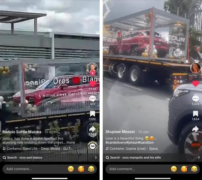據(jù)了解,Oros是南非本土頂流KOL,以“寵妻狂魔”的特質(zhì)在社交媒體平臺(tái)上吸引超百萬(wàn)粉絲。情人節(jié)前夕,他在當(dāng)?shù)亟萃鹃T(mén)店訂購(gòu)了一臺(tái)紅色大圣車(chē)型,為給妻子制造情人節(jié)驚喜, Oros聯(lián)手捷途汽車(chē)策劃了這場(chǎng)貫穿全城的“愛(ài)情巡游”。