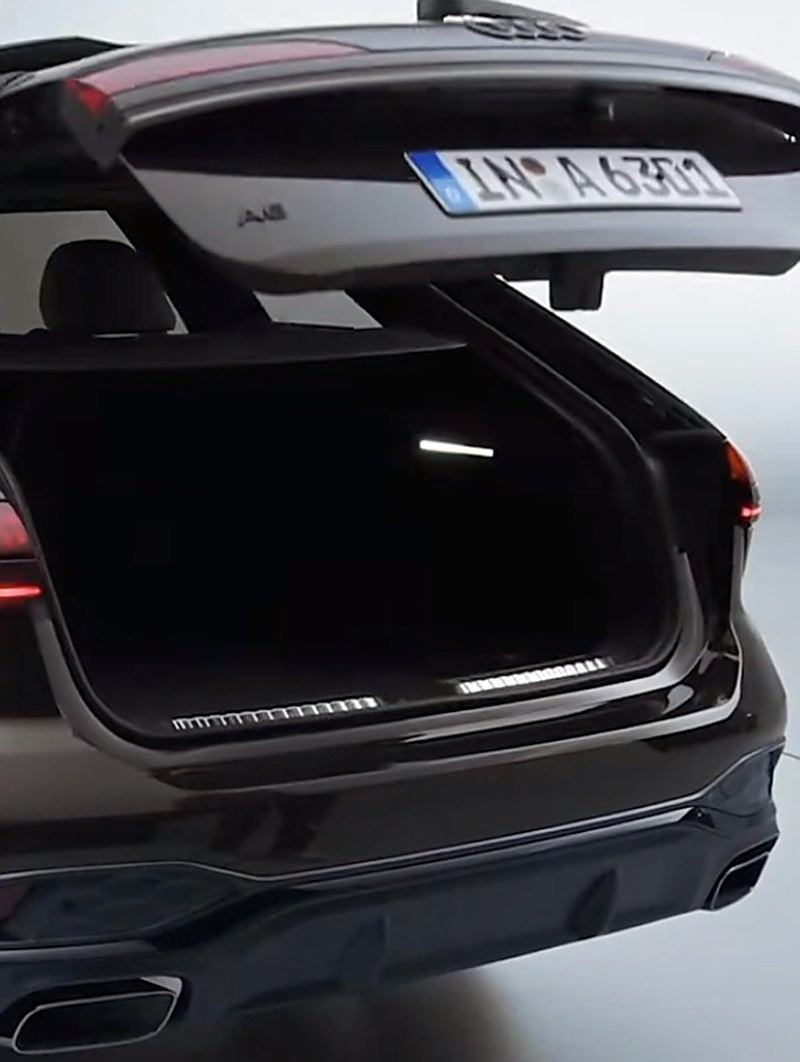 側(cè)面來看,整個車身優(yōu)雅修長,配合大尺寸的黑色輪圈,亦不失運動氣息。車輛尾部來看,尾燈傳承了奧迪的經(jīng)典設(shè)計,同時貫穿式的尾燈樣式又顯得與時俱進。此外新車配備熏黑后包圍并采用雙邊共兩出排氣。新車的后備廂的空間十分可觀,后備箱蓋可以通過腳踢感應(yīng)開啟。