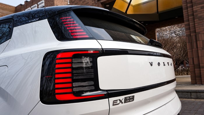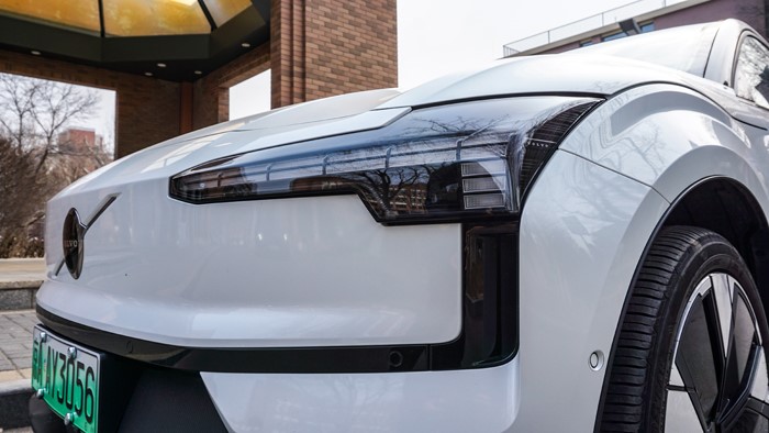 頭燈造型銳利,采用LED光源,提供出色的照明效果,由于是純電車型,前格柵為全封閉式設計,巨大的沃爾沃黑色標徽格外搶眼,整體營造出動感的前臉視覺效果。