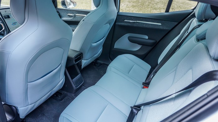 后排空間中規(guī)中矩,可勝任日常家庭出行。寬大的玻璃車頂也讓視野更加開闊,由于透光率僅為3.9%,因此無需使用遮陽簾,陽光也能溫和地透入車內。