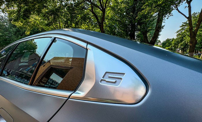 寶馬5系在C柱上鑲嵌了數(shù)字5的徽章,辨識度非常高,并且這個數(shù)字在夜晚是可以點亮的。翼子板處還鑲嵌了經(jīng)典的M運動徽章。