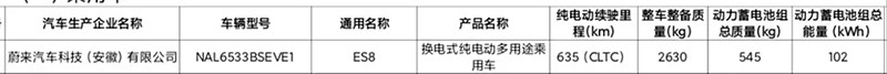 全新蔚來(lái)ES8續(xù)航信息曝光 提供102kWh大電池