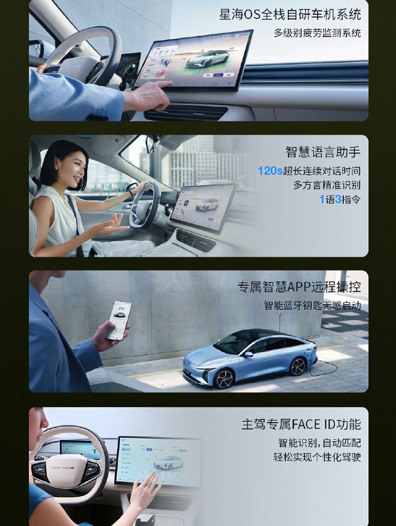 內(nèi)飾方面,新車全系標(biāo)配升級15.6英寸中控屏搭配8.8英寸液晶儀表,頂配車型升級64色氛圍燈。新車還提供智能語音交互。其中800V超快充版還配備前排座椅電動調(diào)節(jié)、加熱、通風(fēng)功能。