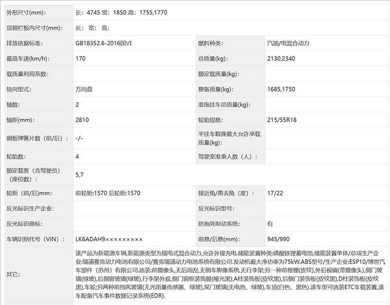 外觀方面,新車采用星光730同款大燈組,搭配亮黑飾條及下方黑化蜂窩狀中網,拉伸橫向視覺效果。前包圍通風口搭配銀色裝飾件。另外新車提供單色及雙色車身設計。車尾尾燈和車頭相呼應。車身尺寸方面,新車長寬高分別為4745*1850*1755(1770)mm,軸距2810mm。