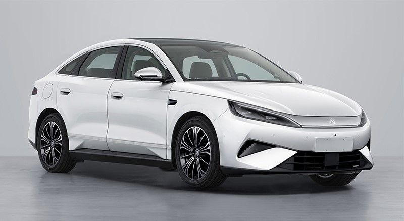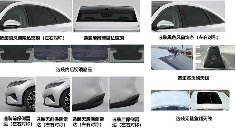 車側(cè)和秦L EV相似,都是半隱藏式門把手,在側(cè)裙還有兩個(gè)尖角設(shè)計(jì)。車尾搭配貫穿式尾燈,加入波浪紋元素。車身尺寸方面,新車長(zhǎng)寬高分別為4866*1880*1495mm,軸距為2820mm。車長(zhǎng)比秦L EV還更長(zhǎng)。