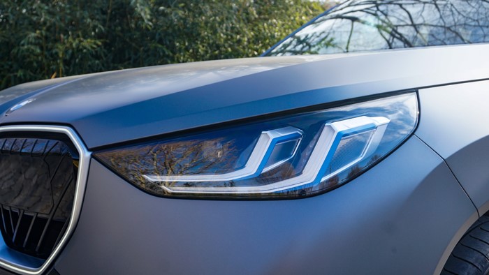 2026款寶馬X3車(chē)身整體線(xiàn)條依舊保持流暢科技感滿(mǎn)滿(mǎn),前臉采用了標(biāo)志性的雙腎格柵。但格柵的交匯線(xiàn)條從原來(lái)的銀色裝飾線(xiàn)條變?yōu)槿亢诨娘L(fēng)格,前杠兩端的銀色裝飾板也變?yōu)楹谏@也是26款最明顯的特征。值得一提的是這個(gè)雙腎造型的中網(wǎng)邊框夜晚也是可以點(diǎn)亮的。