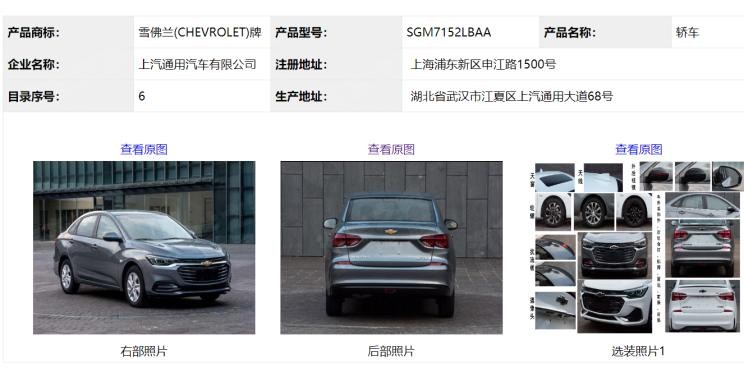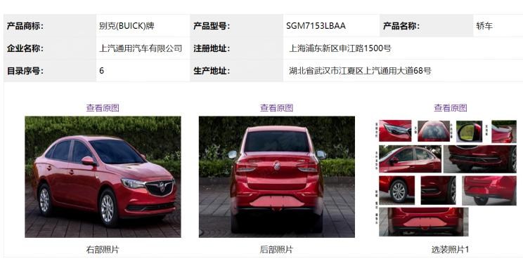『英朗1.5L四缸車型工信部公告截圖』