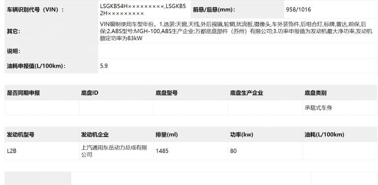 四缸英朗回歸 曝英朗/科魯澤1.5L申報(bào)圖