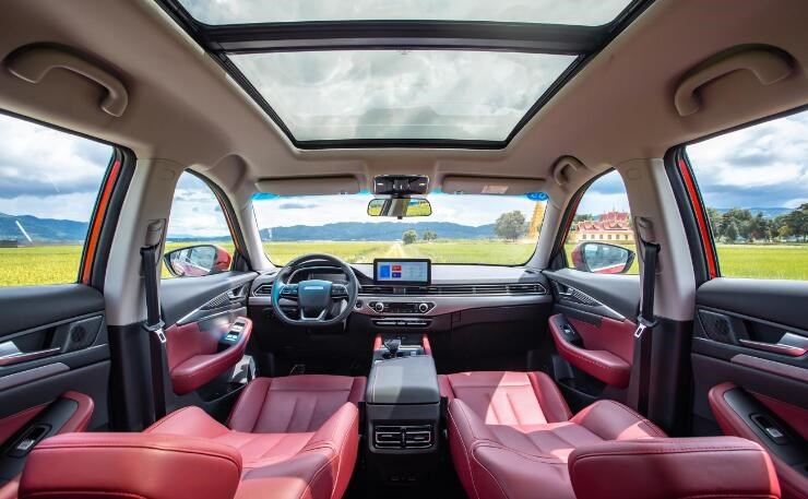 內(nèi)飾方面,新捷途X70S內(nèi)部采用懸浮環(huán)抱式設(shè)計,中控臺配備了10.25英寸懸浮式多媒體屏幕,配合12.3英寸液晶儀表以及電子檔把,科技感更強。貫穿式出風口分割了整個中控臺,整體看上去很有層次感。同時,灰色碳板的加入提升了內(nèi)飾質(zhì)感。內(nèi)置車機系統(tǒng)功能比較豐富并且支持手機互聯(lián)。