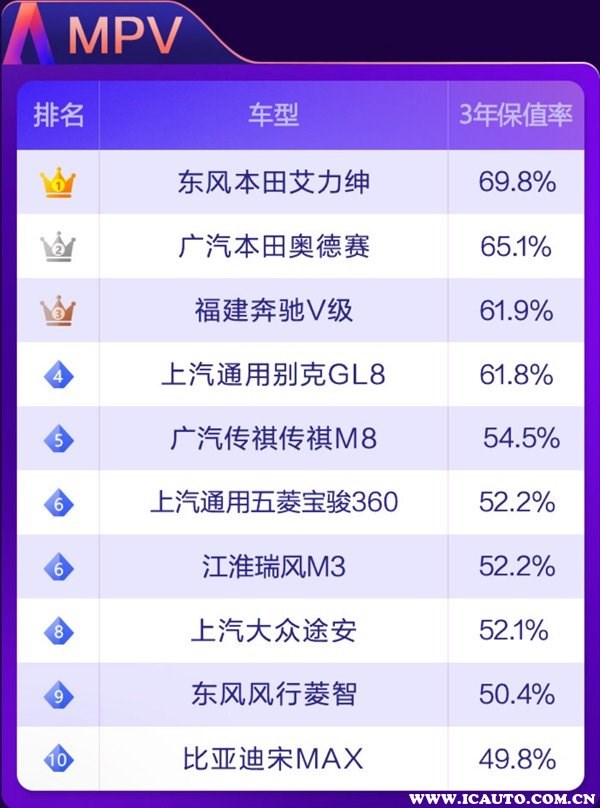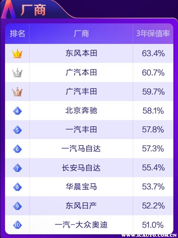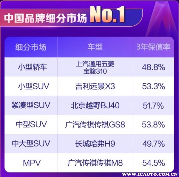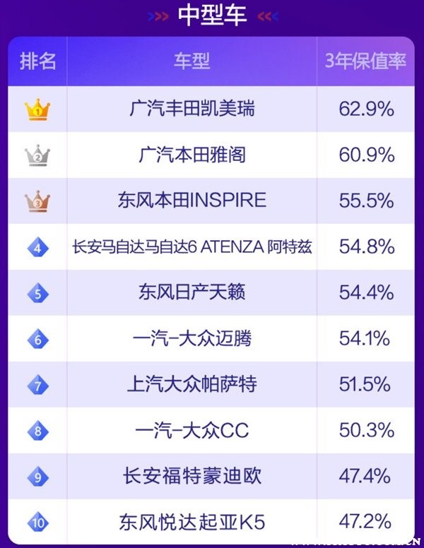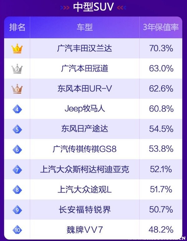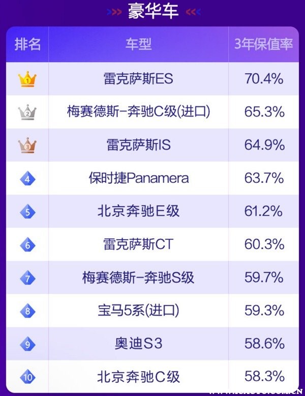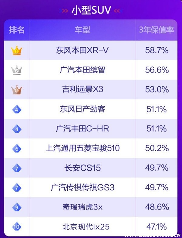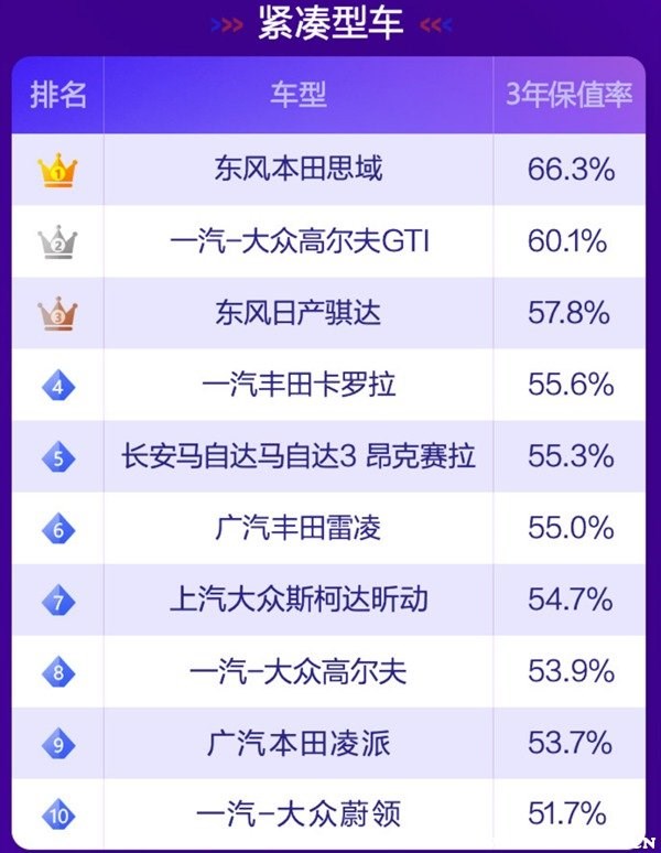 根據(jù)58汽車聯(lián)合J.D. Power頒布“紫檀獎(jiǎng)·2021中國(guó)汽車保值率風(fēng)云榜”可以了解到,目前國(guó)內(nèi)汽車市場(chǎng)上保值率最高的車分別有如下車型: