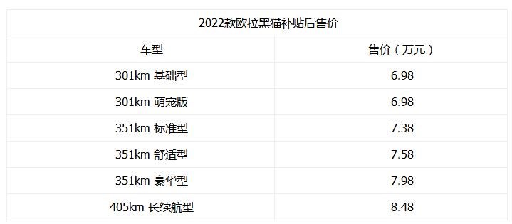 歐拉黑貓2022新款價(jià)格,長城歐拉黑貓2022款最新消息