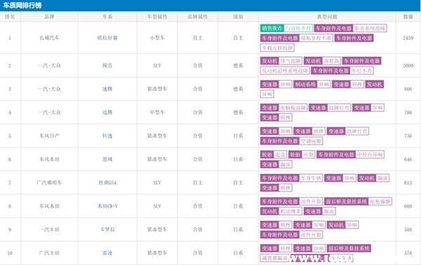 其實(shí)上述八款車不僅是故障投訴最多的,同時(shí)也是家用車領(lǐng)域中相對(duì)耐用的車型,像軒逸、卡羅拉等車型都是業(yè)內(nèi)公認(rèn)的“省心、省錢還省油”的車,之所以投訴量多主要是因?yàn)檐囕v的銷量大,畢竟賣得多的車一旦發(fā)生小毛病,那么投訴量也是隨之增漲的。