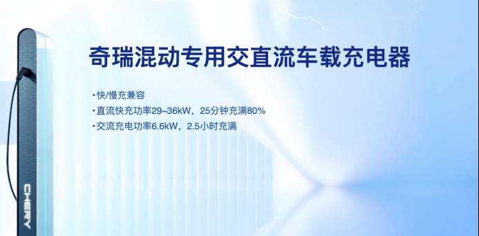此外,在奇瑞混動專用交直流充電器的助力下,“DP-i智能混動架構(gòu)”相關(guān)產(chǎn)品在使用直流快充功率36kW的情況下,25分鐘內(nèi)電量充至80%,在交流功率6.6kW的充電樁使用時,2.5小時便可充滿,一杯咖啡、一次午餐的時間便能滿血復活。
