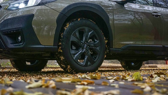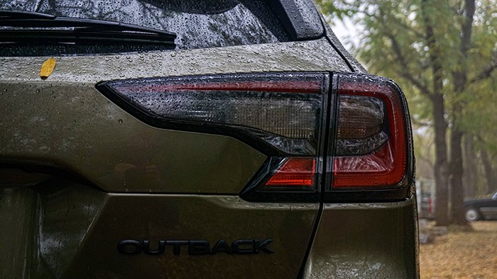 傲虎探享版的車身側(cè)面線條和車身尺寸與其他版相同,只有高度較其他兩款車低5毫米,在車門下方有熒光綠色“OUTBACK”標(biāo)示。另外體型巨大的黑色車頂行李架、黑色反光鏡以及黑色涂裝18英寸鋁合金輪轂,這些都是獨(dú)有配置。