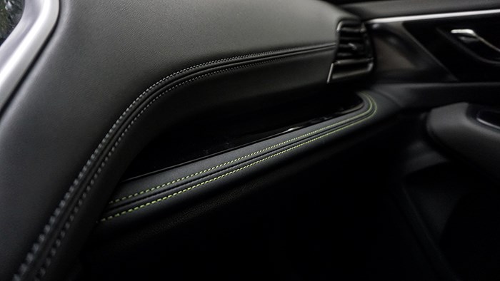 傲虎探享版整個(gè)內(nèi)飾除了增加綠色縫線之外,座椅也是綠色縫線處理手法,并且使用了防潑水合成材質(zhì)。整個(gè)座椅樣式以及舒適度都較高,主副駕駛均為電動(dòng)調(diào)節(jié),還有三擋座椅加熱。
