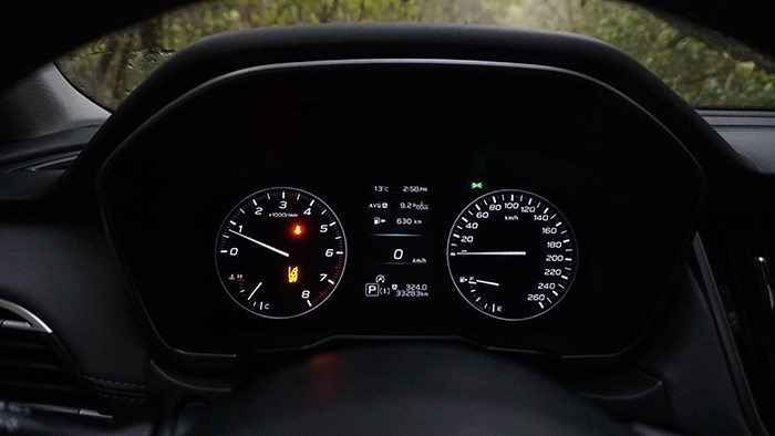 斯巴魯傲虎2.5i探享版使用了較為傳統(tǒng)的儀表盤設(shè)計(jì),常規(guī)指針顯示。中央彩色屏幕可以顯示非常多的車輛信息,包括EyeSight駕駛輔助系統(tǒng)一些功能。