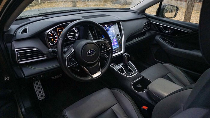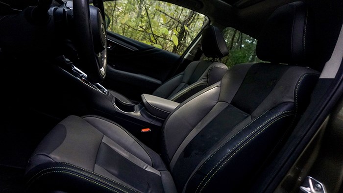 斯巴魯傲虎2.5i探享版的內(nèi)飾依舊采用全黑色設(shè)計(jì),只不過縫線變?yōu)榱司G色,搭配少量的銀色裝飾件,與外觀酷酷的感覺相呼應(yīng)。