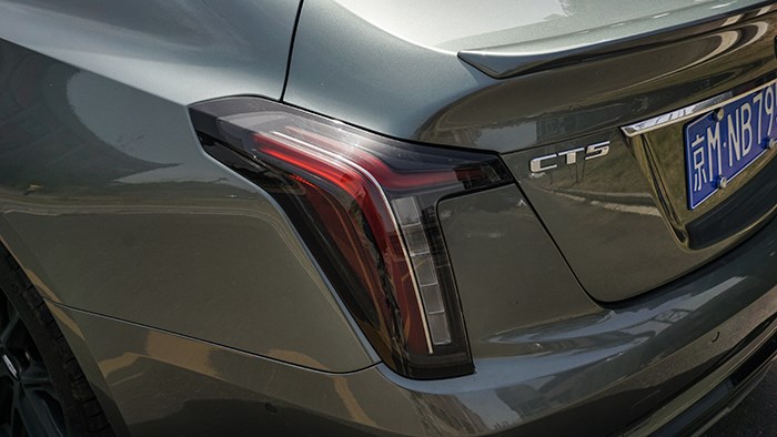 頂配鉑金版本的CT5配上了R19尺寸的黑化輪轂、尾部排氣的設計、運動式踏板和小尾翼,能夠加上的運動性點綴基本都加上了。尾燈組也很精致,甚至還做了最近很流行的熏黑設計。
