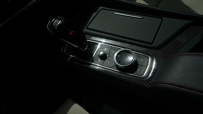 中控臺功能按鍵集中設計在了中控屏下方的位置,一字排開,這些物理按鍵手感不錯,方便操作。