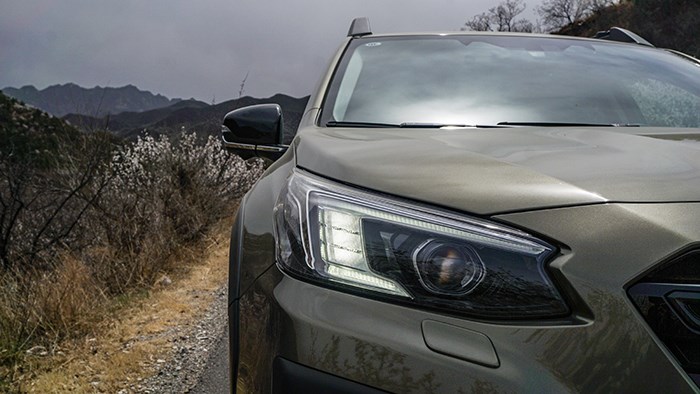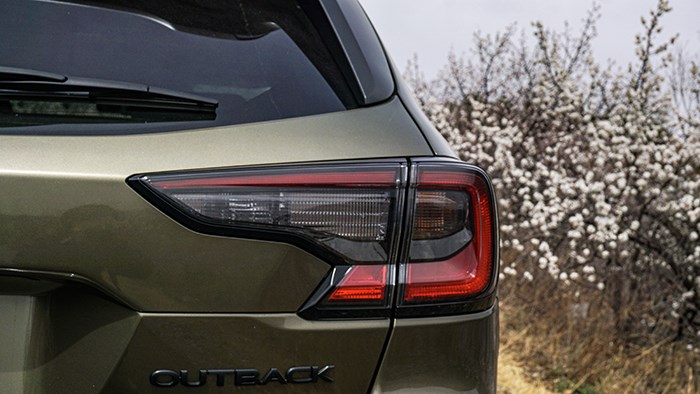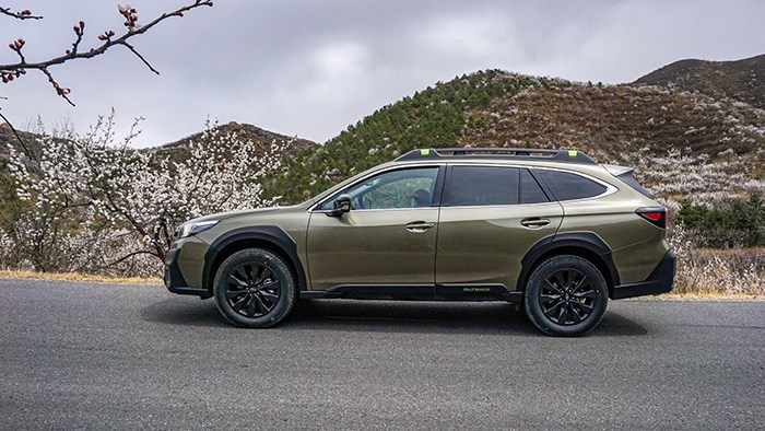 傲虎探享版的車身側(cè)面線條和車身尺寸與其他版相同,只有高度較其他兩款車低5毫米,在車門下方有熒光綠色“OUTBACK”標示。另外體型巨大的黑色車頂行李架、黑色反光鏡以及黑色涂裝18英寸鋁合金輪轂,這些都是獨有配置。