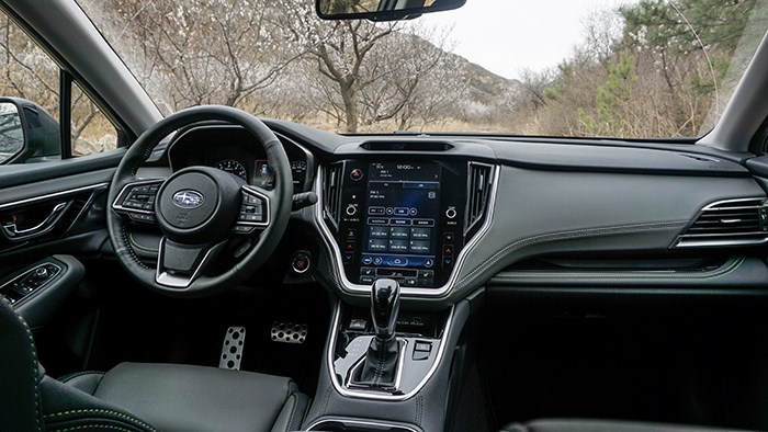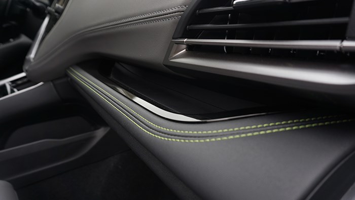 斯巴魯傲虎2.5i探享版的內(nèi)飾依舊采用全黑色設(shè)計,只不過縫線變?yōu)榱司G色,搭配少量的銀色裝飾件,與外觀酷酷的感覺相呼應(yīng)。