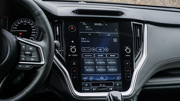 11.6英寸多功能觸控顯示屏操作上沒有任何變化,運行流暢度也沒有任何問題。中控屏幕下方是空調(diào)操作面板,兩側(cè)溫度顯示外圈是溫度調(diào)節(jié),操作簡單。新款斯巴魯傲虎不同車型均有著不同的改善,其中2.5i AWD探享版EyeSight新增了DMS駕駛員監(jiān)測系統(tǒng)和多視角盲區(qū)影像監(jiān)測系統(tǒng),2.5i AWD運動版EyeSight車型增加了方向盤震動提醒功能,再加上一些常用功能像自動駐車(AVH)、車輛動態(tài)控制系統(tǒng)(VDC)被移至主頁面。