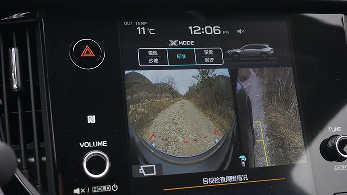 全車360度影像對于戶外穿越時的幫助還是很大的的,只需要按下攝像頭鍵,就可以在屏幕里了解野外的路況。