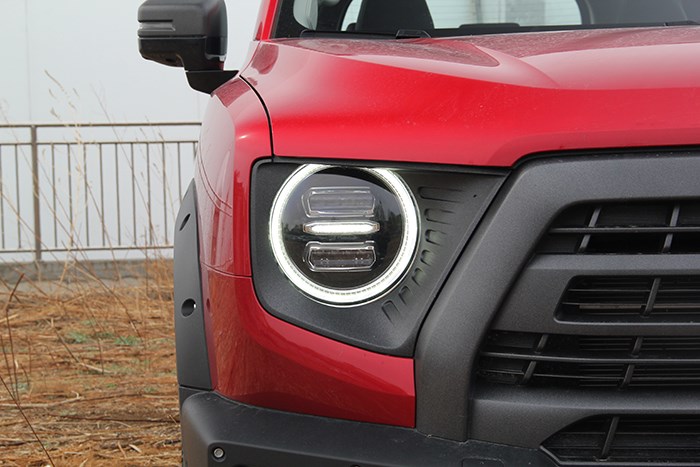 大狗的車身尺寸為4620×1910×1780(mm),軸距2738mm。平直的線條從前車燈滑至車尾,不同于傳統(tǒng)硬派越野車那樣的“方盒子”造型,其在線條折角處做了圓潤(rùn)的特殊處理,剛中帶柔的飽滿車身狀態(tài)更進(jìn)一步提升了它時(shí)尚復(fù)古的形象。在細(xì)節(jié)方面,車窗的周邊裝飾了銀色飾條來(lái)提升檔次感,腰線采用貫穿式設(shè)計(jì),在一定程度上拉伸了視覺(jué)長(zhǎng)度。