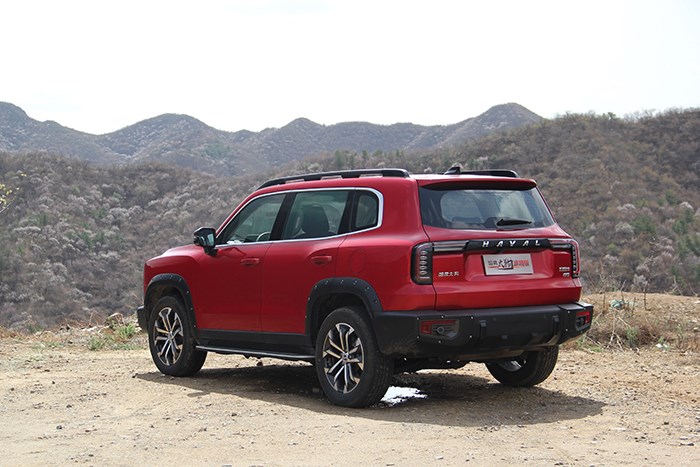 車尾在設(shè)計(jì)風(fēng)格上與車頭保持高度一致,沿用粗獷造型中加入圓潤(rùn)線條的理念,排氣采用隱藏式設(shè)計(jì),敦實(shí)的大尺寸護(hù)杠“托起”飽滿的尾部,意在營(yíng)造自己充滿力量感的野性形象。大狗的最大接近角24°,最大離去角30°,最小離地間隙200mm,作為意在向硬派越野靠攏的城市SUV車型,這份數(shù)據(jù)還是很亮眼的。