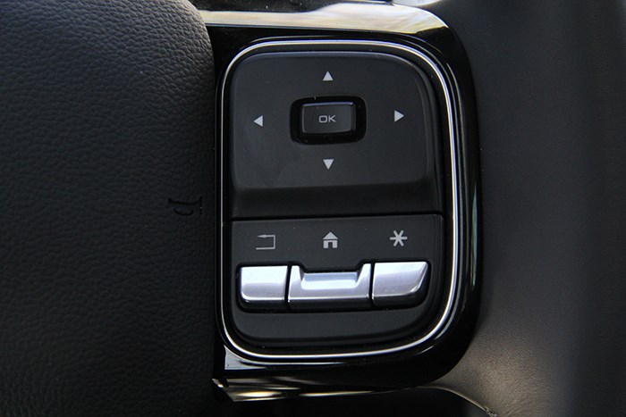 三幅式方向盤握感較為飽滿,造型時(shí)尚立體,看起來(lái)很有力量感。方向盤操作時(shí)轉(zhuǎn)向有一定虛位,指向并不十分精準(zhǔn),但轉(zhuǎn)向阻尼調(diào)教的不錯(cuò),保持了一種相對(duì)柔順的感覺(jué)。方向盤的多功能按鍵包含了儀表信息控制、中控信息控制、語(yǔ)音交互、藍(lán)牙電話等功能,按鍵大小適中,靈敏度與手感反饋表現(xiàn)出色。