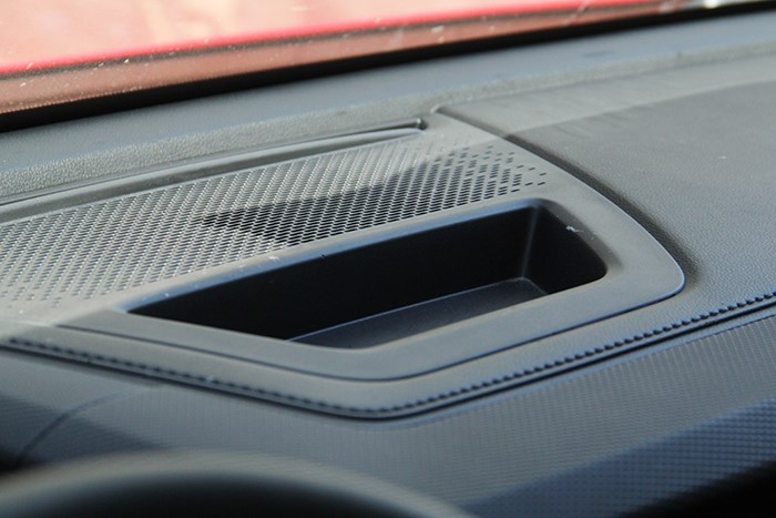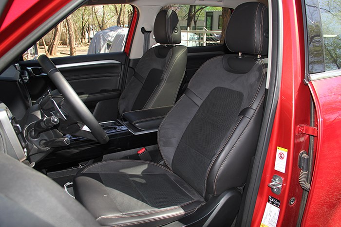 座椅采用拼接式設(shè)計(jì),整體上不算寬大,填充物較為柔軟,兩側(cè)的翻毛材質(zhì)提升了人與座椅的摩擦性,在一定程度上彌補(bǔ)了因坐墊長(zhǎng)度等因素引起的包裹性一般的現(xiàn)狀。