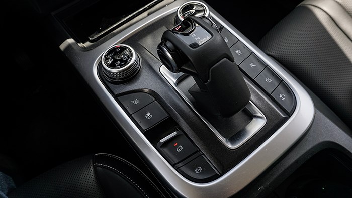 換擋機(jī)構(gòu)為飛機(jī)操作桿的樣式,造型很有科技感。兩側(cè)則是一些常用的功能鍵選擇,包括越野時(shí)常用的功能都可以一鍵開啟或關(guān)閉。