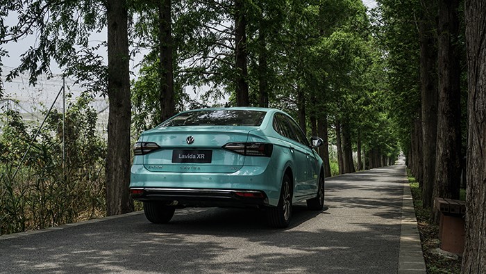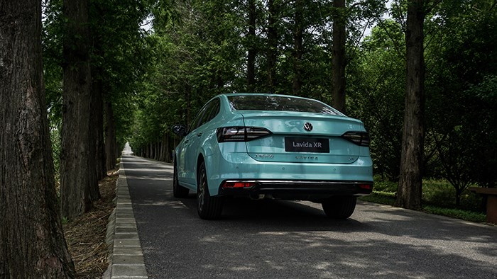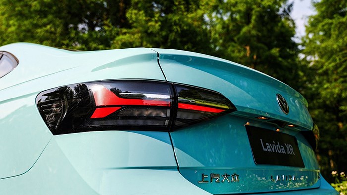 尾部大燈的內(nèi)部結(jié)構(gòu)很像一只射出的箭,并經(jīng)過了黑化處理,還是很有特點(diǎn)的。尾燈上還鑲嵌了鍍鉻裝飾,提升細(xì)節(jié)方面的豪華感。在牌照框下沿,粘貼了LAVIDA朗逸的英文標(biāo)識(shí),讓車輛尾部多了些精致感。