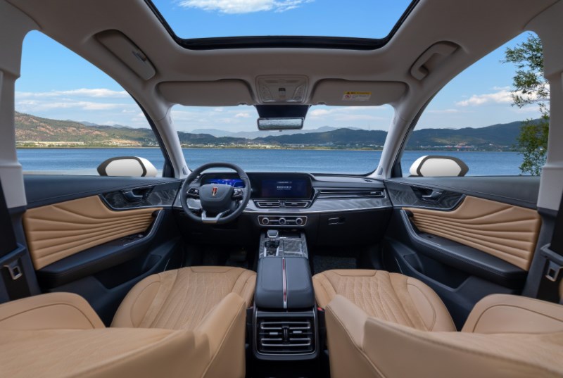 中式美學,強者盡顯風流。新紅旗HS5外觀設(shè)計全面升級,基于紅旗品牌“尚·致·意”造型語言進行創(chuàng)新演繹?!案呱斤w瀑、中流砥柱”的直瀑式格柵、“飛翼”式前大燈、“紅光閃耀”貫通式前旗標,共同展現(xiàn)專屬于紅旗的昂揚氣勢。動感凌厲的腰身姿態(tài)、旌旗飄揚的車身型面,以及車后部融入箭羽意象的貫穿式尾燈,令人過目難忘。內(nèi)飾設(shè)計上,新紅旗HS5以東方美感與前沿技術(shù)為基礎(chǔ)進行全面改進升級,更有流水氛圍燈、實木飾板、金屬揚聲器面罩等細節(jié),巧妙點綴、致享尊貴。