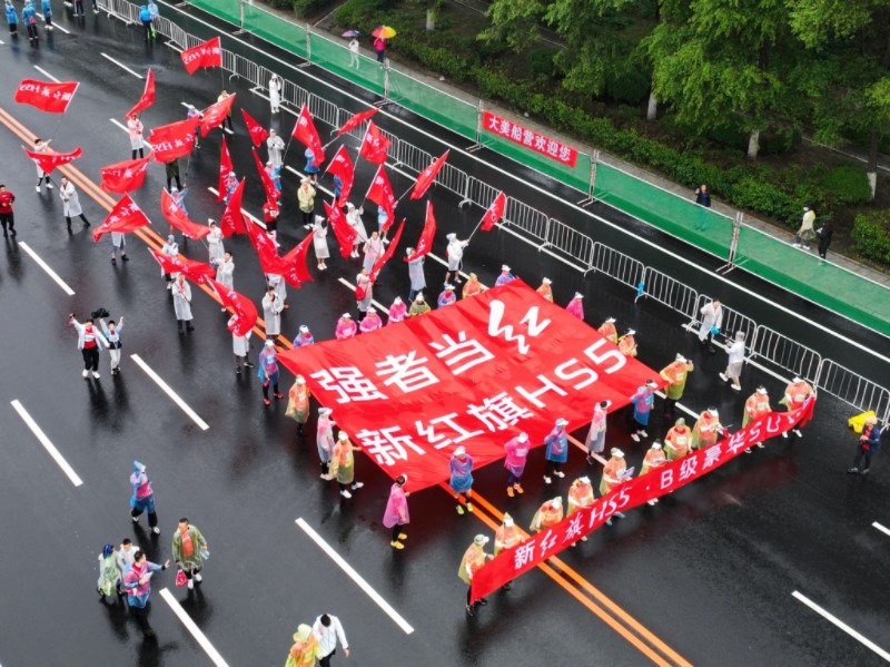 在這個夏季,3萬多名參賽者再次引燃塞外江城,征戰(zhàn)馬拉松賽道,與新紅旗HS5一起展示“強者當紅”的力量。其中,由紅旗車主、員工、經(jīng)銷商、媒體人組成的“新紅旗HS5旗跑團”格外引人矚目,百人身穿紅色賽服奔跑在“吉馬最美賽道”上,向大家傳遞著紅旗品牌的自信、活力和向上的鋒芒。