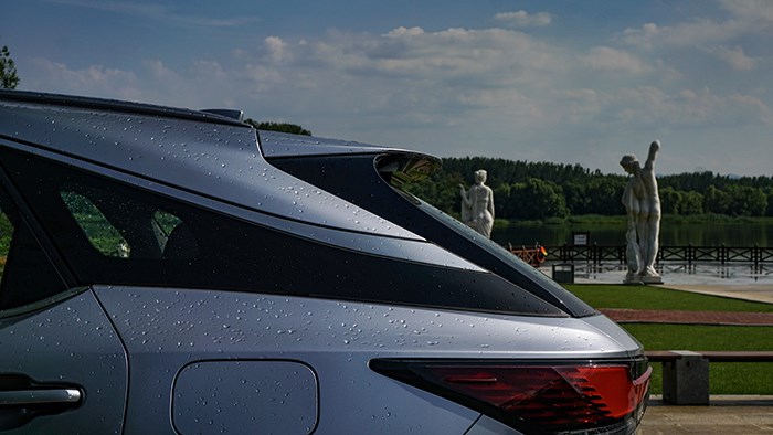 雷克薩斯RX350h的C柱采用了熏黑色的設(shè)計,讓整個車頂看起來如同懸浮式車頂一樣。再配合車身前低后高的線條,運動氣息也展現(xiàn)出來,而那條鍍鉻飾條可謂功不可沒。但量度數(shù)據(jù)告訴我們,頂部的實際高度并沒有降低,這能確保車內(nèi)后排乘客的頭部空間。
