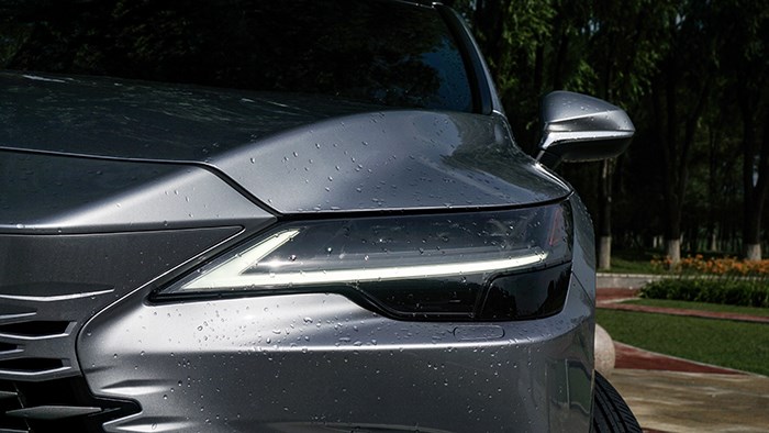 “L”型LED矩陣前大燈造型充滿科技感,技術(shù)含量同樣很高,搭載了 BladeScan? 極速旋鏡式遠光燈自適應(yīng)控制系統(tǒng) AHS。前大燈組是由三個矩陣式遠近光 LED 光源和?個獨?的 BladeScan? 專?單元組成,并通過前擋風(fēng)頂部的攝像頭檢測前方光線。
